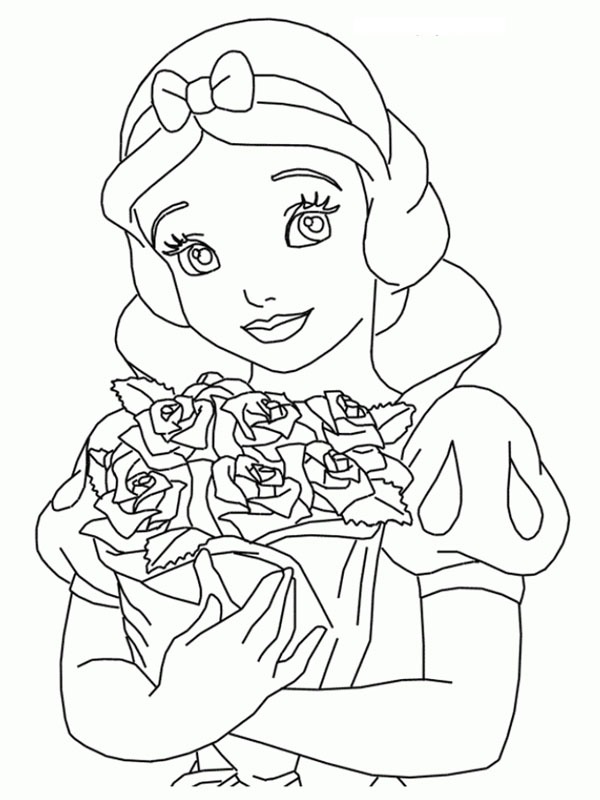 Pinte agora a página de Branca de Neve com rosas. Ou escolha entre as outras 8 páginas de divertidas em desenhocolorir.com.br.