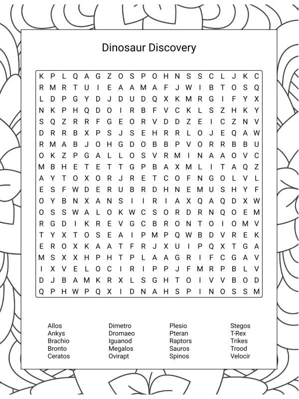 Pinte agora a página de Caça-palavras de dinossauros. Ou escolha entre as outras 9 páginas de divertidas em desenhocolorir.com.br.