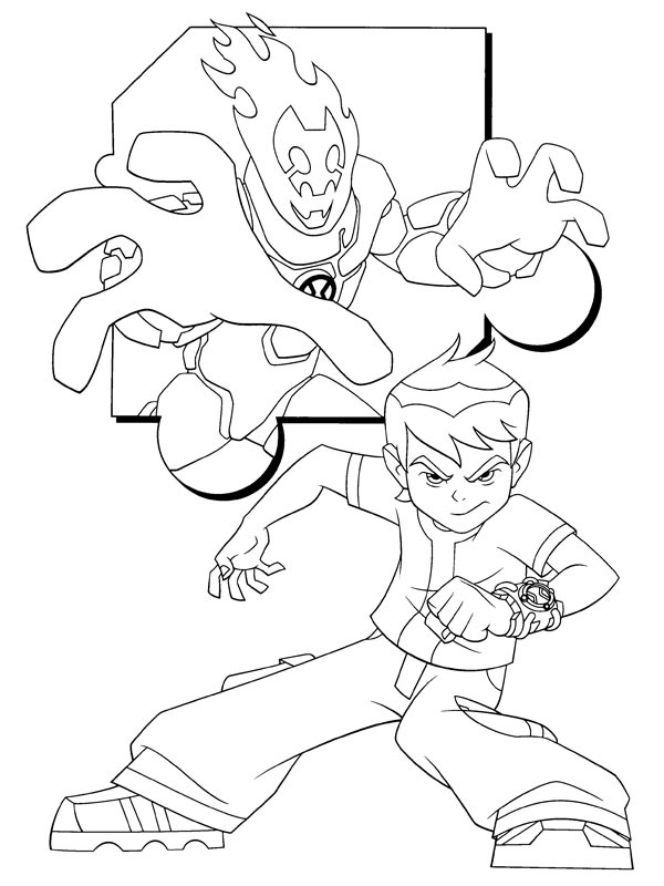 Pinte agora a página de Chama e Ben Tennyson. Ou escolha entre as outras 26 páginas de divertidas em desenhocolorir.com.br.
