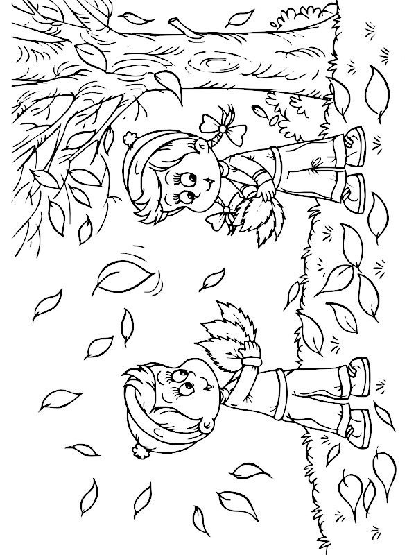 Pinte agora a página de Coletando folhas de outono. Ou escolha entre as outras 25 páginas de divertidas em desenhocolorir.com.br.