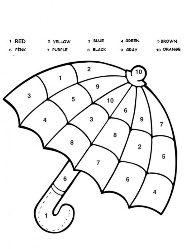 Pinte agora a página de Colorir guarda-chuva por número. Ou escolha entre as outras 15 páginas de divertidas em desenhocolorir.com.br.