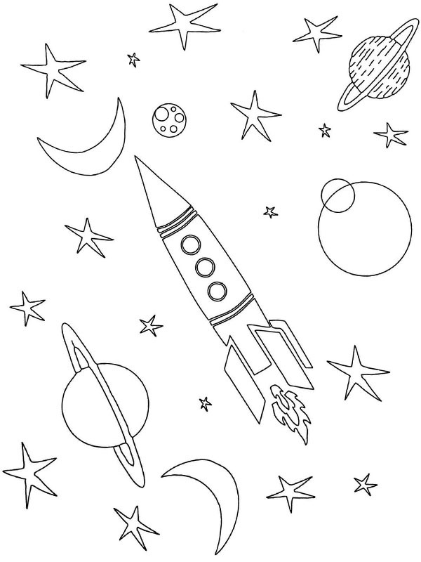 Foguete sendo lançado ao espaço para colorir