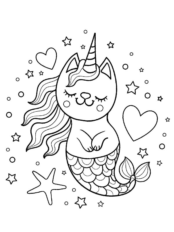 Pinte agora a página de Gato-unicórnio sereia. Ou escolha entre as outras 21 páginas de divertidas em desenhocolorir.com.br.
