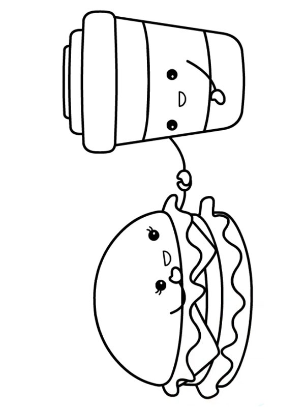 Pinte agora a página de Hambúrguer Fofo e Café. Ou escolha entre as outras 54 páginas de divertidas em desenhocolorir.com.br.