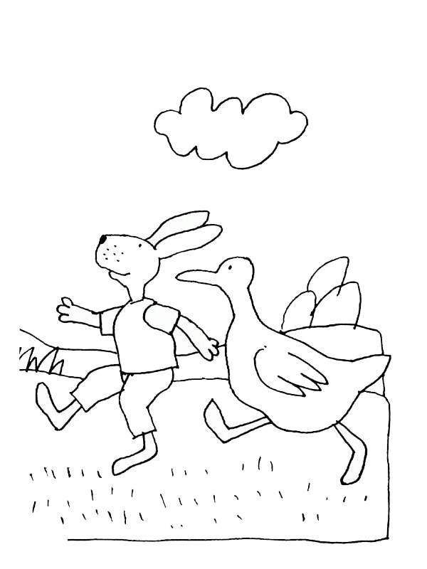 Pinte agora a página de Lebre e pato. Ou escolha entre as outras 3 páginas de divertidas em desenhocolorir.com.br.