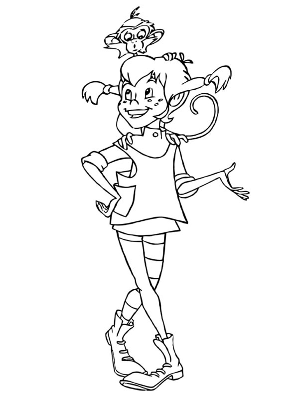 Pinte agora a página de Pippi Meialonga e o macaquinho Senhor Nilsson. Ou escolha entre as outras 4 páginas de divertidas em desenhocolorir.com.br.