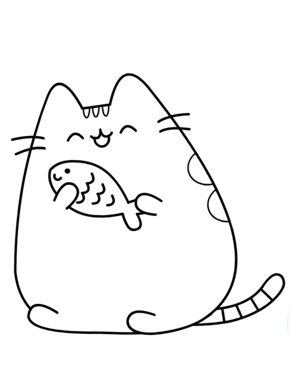 Pinte agora a página de Pusheen com peixe. Ou escolha entre as outras 24 páginas de divertidas em desenhocolorir.com.br.