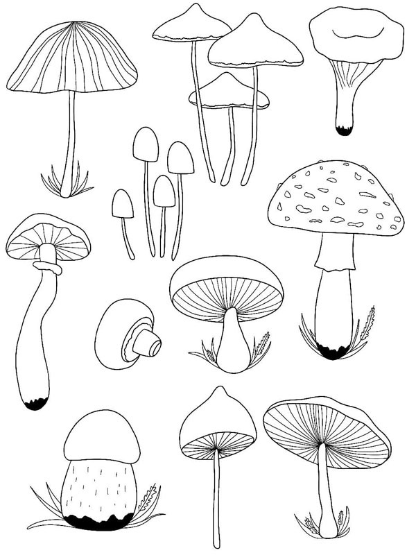 Pinte agora a página de Vários cogumelos. Ou escolha entre as outras 14 páginas de divertidas em desenhocolorir.com.br.